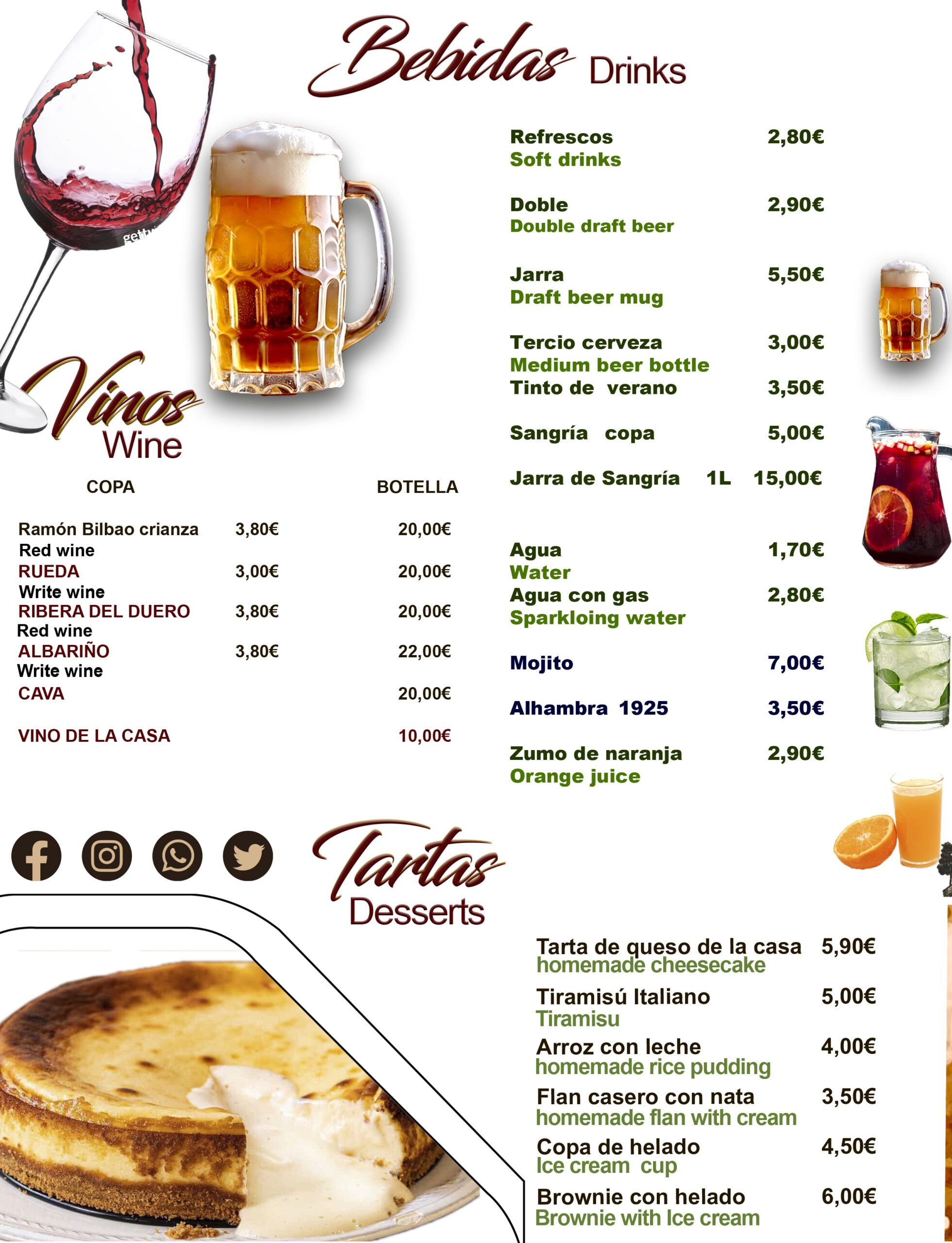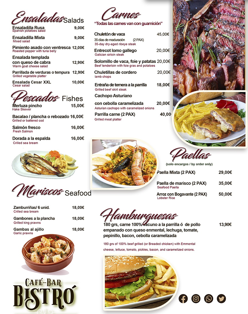 Nuestra carta está cuidadosamente diseñada para satisfacer los paladares más exigentes. Desde entradas irresistibles hasta platos principales inolvidables y postres decadentes, cada bocado es una experiencia culinaria única que te llevará a un viaje gastronómico inolvidable.